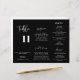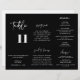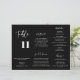 Turn this paper sheet into a modern black wedding tri-fold menu, table number and program with information about the timeline, things that are good to know, food and bar menu. Simply fold, tape the seam on the back and use this modern wedding stationery program for your wedding reception. Background colour can be changed in the design tool if you like!