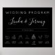 Elegant black Wedding program timeline sign features wedding icons and modern typography. This ceremony program sign is fully customisable, so you can change icons size and order, all text, colours and background to better match your wedding theme!
