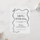 This simple, modern black and white birthday invitation is perfect whatever the milestone age. With a paper effect background, the invitation features a black, hand drawn bow border and the black typography can be easily customised with your party details.