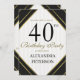 Unique black, white and gold stripes birthday invitation with modern script and serif font. Customise the details at the front and back as you see fit.