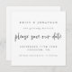 Modern Black and White or Any Colour Script Wedding Save The Date design. With an informal set script for Please Save Our Date. Easily personalise the rest of the text to your details.