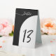 Guide guests in style with this modern table number sign featuring a bold black and white colour palette, handwritten script, and minimalist arch design. Ideal for weddings, receptions, or formal events, this freestanding table tent adds a sleek and organised touch to your tablescape. Fully customisable with your table numbers—perfect for black-tie affairs, modern ceremonies, or monochrome decor themes.
