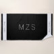Stylish black_beach_towel, with monogram and a white stripe personalised with your own name