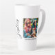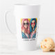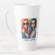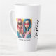This modern photo collage latte mug for best friends features two photos for you to change to your own on a simple black background with the Title "Bestie" and your names to personalise in white script. Placeholder images generated with AI.