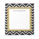 Modern stylish black and white chevron and golden frame personalised notepad.