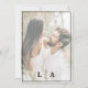 Embrace modern sophistication with this stunning design, featuring elegant white and gold calligraphy on a sleek black background. The added faux gold foliage element elevates the overall look, creating a chic and refined aesthetic. On the reverse, you'll find space to add your favourite couple's photo and monogram, personalising it even further. Fully customisable with your own details, this invitation exudes timeless elegance and style for your special day.