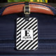 Modern Black & White Diagonal Stripes & Name Luggage Tag