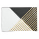 Minimal gold stripes on white and black geometric composition abstract art, modern monochromatic triangles colour block and faux gold foil stripes, luxury design. A simple geometry of lines, stripes and triangles abstract graphic background, that brings a special touch of style and elegance.