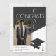 Celebrate your achievement with this modern black and white geometric Congrats Grad photo graduation announcement design. The front features a bold photo layout, while the back includes a stylish cap and diploma silhouette. Perfect for high school or college seniors wanting a minimalist, professional look. Use a color or black and white photo. Created by Simply Farmhouse Press.
