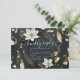 Modern Black White Gold Floral Wreath Wedding RSVP Card