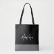 Modern Black White Grey Script Monogram Name Tote Bag