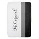 Modern Black White Grey Striped Monogram Script Bath Mat