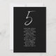 This modern personalised wedding table number card features the table number in white hand lettered script calligraphy and the names of your guests seated at that table. Designed by Susan Cioffey.