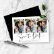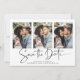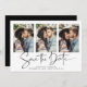 Modern Handwritten Save the Date Multiple Photo Card in black and white in a font that is elegant and evokes a romantic handwritten feel. Designed to use three of your favourite photos for added customisation. Easily add your names and dates for a truly personalised design. Please contact us at cedarandstring@gmail.com if you need assistance with the design or matching products.