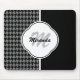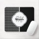 Modern Black White Houndstooth Monogram and Name Mouse Pad