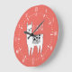 Coral pink modern and cute llama wall clock with white roman numerals.