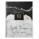 Modern Black White Marble Texture Gold Monogrammed Notebook