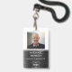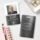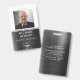 Custom Modern Black White Metal Employee Photo ID Badge. Personalise this corporate id card badge with your employees name, position, photo and your company logo on the front side and your custom info text on the back side. The employee photo works best in square format. Your logo works best as a png square format with transparent background. The placeholder logo you see on the badge will be completely replaced with your own logo design.