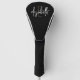 Add a personalised touch to your golf game with this unique and stylish monogrammed golf club cover. This black, white and gold club cover is adorned with your script name and initial of choice, offering a timeless look on the course.