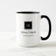 This masculine groomsman coffee mug features a minimalist design, highlighting the groomsman's initials in a modern square motif, complemented by their name and title in sleek, modern black and white typography. For personalisation, input the groomsmen's name, monogrammed initials, and title in the customisation field to create your own unique wedding party mug. Although presented as a groomsman mug, the title is adaptable for the groom, best man, father of the groom, and father of the bride, offering a superb, personalised keepsake for your wedding party.