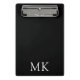 Modern Black and White Monogram Initials Mini Clipboard. Beautiful design featuring clean white double initial monogram text on modern black. Personalise with your own text. Cute accessory, great for use at your school, home, or office. Would make an excellent gift for birthdays, holidays, graduations, promotions, any special occasion, or everyday. We invite you to visit our store, Simon & Grace for matching products and more.