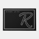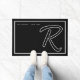 Modern Black White Monogram Script Family Name Doormat