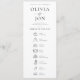 Modern Black and White Order of Day and Menu combined. The White Space Edit Collection. Classic elegance for your tables in timeless style with this minimalist dual purpose design for modern couples who love clean lines and effortless sophistication. This simple yet elegant layout suits any wedding theme or colour palette. Fully customisable. Update your names, date, and venue details easily. Simple black and white palette for a classic feel, wth lots of white space.