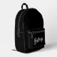Modern Black White Personalised Monogram and Name Printed Backpack