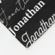 Cool black and white name collage blanket decorated in nine different fonts customized with your name. Chic custom gift with fun typography in cursive text.