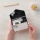 A modern black and white wedding all in one wedding invitation with wedding details, QR code for website and a rip-off RSVP card. Delicate hand-drawn peonies adorn the corners, adding a touch of floral elegance without the use of colour. This modern, monochrome design creates an timeless look. Add your own black and white photo or try the filter option in design tool. A white art deco–inspired frame highlights photo and frames the text. Some word are this elegant calligraphy cripts to add a handwritten feeling.