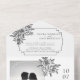 A modern black and white wedding all in one wedding invitation with wedding details, QR code for website and a rip-off RSVP card. Delicate hand-drawn peonies adorn the corners, adding a touch of floral elegance without the use of colour. This modern, monochrome design creates an timeless look. Add your own black and white photo or try the filter option in design tool. A white art deco–inspired frame highlights photo and frames the text. Some word are this elegant calligraphy cripts to add a handwritten feeling.