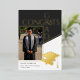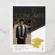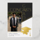 Celebrate your achievement with this modern black, white and gold geometric Congrats Grad foil photo graduation announcement design. The front features a bold photo layout, while the back includes a stylish cap and diploma silhouette. Perfect for high school or college seniors wanting a minimalist, professional look. Use a colour or black and white photo. Created by Simply Farmhouse Press.