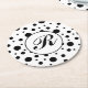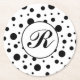 Modern Black White Polka Dot Monogram Round Paper Coaster