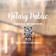 Modern and minimal notary public business car decal is perfect for your marketing efforts! The elegant notary window decals for business are able to be personalised before purchase. The modern minimalist sign features a transparent background with white text and social media icons. Add your link to customise the QR code.