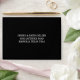 Make a striking first impression with our Modern Black and White Wedding Envelope, designed to captivate from the very first glance. Crafted in a rich, deep black finish, this envelope exudes modern elegance while setting the tone for a truly unforgettable celebration. The exterior features crisp white “To” and “From” lettering, creating a bold, high-contrast look that is both sophisticated and effortlessly stylish. Clean and minimal on the outside, it offers just the right hint of what’s to come inside. Upon opening, guests are delighted with a unique and personal touch, a beautifully printed photo of the wedding couple on the inside flap. This unexpected detail transforms the envelope into a meaningful keepsake, adding warmth, personality, and a memorable reveal before the invitation is even fully read. Perfect for couples who want to make a statement, this envelope combines modern design with heartfelt customization, ensuring your wedding invitation stands out from the moment it’s received.