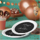 These modern personalised wedding paper plates feature the bride's and groom's first names and wedding date in hand lettered white script typography on a simple black background bordered with white. Please check out our I Love Weddingz shop to find more selections in this collection. Designed by Susan Coffey.