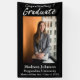 Elegant and modern congratulations graduate vertical banner with photo. Designed with trendy white handwritten brush script typography on classy and elegant black background. Customise school or college details and class year.