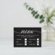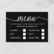 Easily personalize these menu selection cards with your own wording by using the "personalize this template" section or click the "customize further" link to change the font styles, colors and layout to suite. There is also room on the back of the card to add more wording or a photo of your choice.
