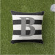 Designed with bold black and white stripes on front and back of pillow and front side has big grey monogram letter on centre.