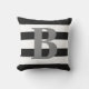 Modern Black White Striped Pattern Grey Monogram Cushion