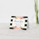 Modern Black White Stripes Classy Floral Thank You Card.
