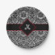 Modern Black White Stripes Pattern Monogram Custom Paper Plate