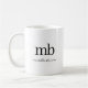Modern Black White Trendy Script Initial Monogram Coffee Mug