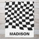 Create your own personalised blanket featuring your monogram name in modern minimalist typography and wavy chequered pattern background.