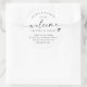 Hotel Bag Stickers: Welcome guests in style with these black and white modern handwriting hotel bag stickers, perfect for greeting friends and family as they arrive for your wedding weekend. Each round 3-inch sticker features the warm phrase “welcome friends & family” with a small heart accent above your custom message. A short note of thanks appears at the bottom, along with the couple’s names and wedding date for a thoughtful, coordinated touch. The clean layout and handwritten script give these stickers a modern yet timeless feel — ideal for sealing welcome bags, boxes, or favours for destination weddings or local celebrations alike.