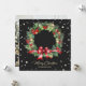 Elegant black photo Merry Christmas card featuring a watercolor wreath of berries, holly, pine cones and conifer tree branches. A photo at the back. Easily personalise this photo holiday card with your photo and family name.