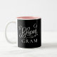 Gram design with a hand lettering and an arrow with heart. Personalise the side of grandparent design with grandchildren names. Visit our shop to view this mug in a large assortment of grandmother names.