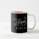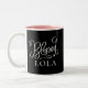 Lola design with a hand lettering and an arrow with heart. Personalise the side of grandparent design with grandchildren names. Visit our shop to view this mug in a large assortment of grandmother names.