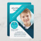 A modern photo invitation, in shades of teal and blue with a white background and a diagonal photo window. The cross can be dragged to any location, made larger or smaller or eliminated. (<a href='https://www.freepik.com/free-vector/abstract-business-cover-template-with-photo_2401392.htm'>Designed by Freepik</a>. <a href='https://www.freepik.com/free-photo/student-with-backpack-on-one-shoulder_861082.htm'>Designed by Pressfoto</a>). <br/><br/>The card is easy to customise with your wording, font, font colour and choice of six paper types.<br/><br/>Not exactly what you're looking for? All our products can be custom designed to meet your needs at no extra charge.<br/><br/>Simply contact us at askcottonlamb@gmail.com<br/><br/>Coordinating products available: