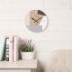 Modern Block Stripes Pattern Art On Faux Woodgrain Large Clock